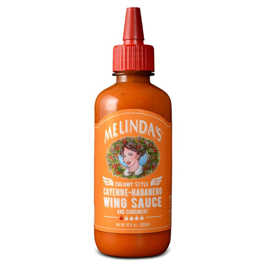 Cayenne crémeux de Melinda — Habanero. Notre sauce pour ailes d'origine parce que, oui, le monde a besoin d'une meilleure sauce pour ailes. Nous avons mélangé nos habaneros signature avec un peu de poivre de Cayenne pour créer la sauce la plus irrésistiblement épicée et acidulée que vous ayez jamais recouverte d'une aile de poulet. Fabriqué à la manière de Melinda : avec des ingrédients entiers et frais et les meilleurs poivrons de la planète pour les personnes soucieuses de ce genre de choses. À déguster sur des ailes, du poulet, des crevettes pétards, des wraps, des sandwichs et pratiquement tout.