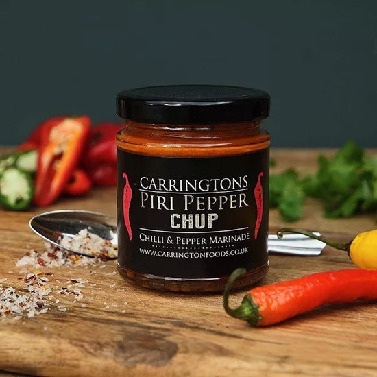 Piri Pepper Chup incarne l'essence des saveurs nord-africaines dans une marinade polyvalente à base de piment et poivron rouge. Cette sauce de style peri-peri offre un équilibre subtil entre chaleur modérée et profondeur aromatique, avec des notes distinctes d'épices chaudes et de poivron rôti. Idéale pour mariner viandes et légumes, enrichir vos pâtes ou accompagner vos plats, elle transforme chaque bouchée en expérience gustative authentique. Un condiment incontournable pour les amateurs de saveurs complexes et de piquant maîtrisé.