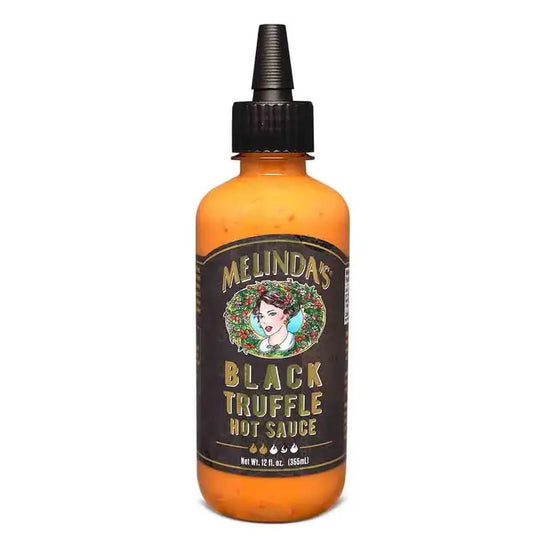 Truffe noire de Melinda. Saveur supérieure, aucune veste requise. Saveur riche et complexe issue du mélange parfait de truffes noires italiennes, de piments de Cayenne et d'une touche de miel colombien fin. Fabriqué à la manière de Melinda : avec des ingrédients entiers et frais et les meilleurs poivrons de la planète pour les personnes soucieuses de ce genre de choses. Suggestion d'accords mets : tout ce que vous mangez en ce moment.
